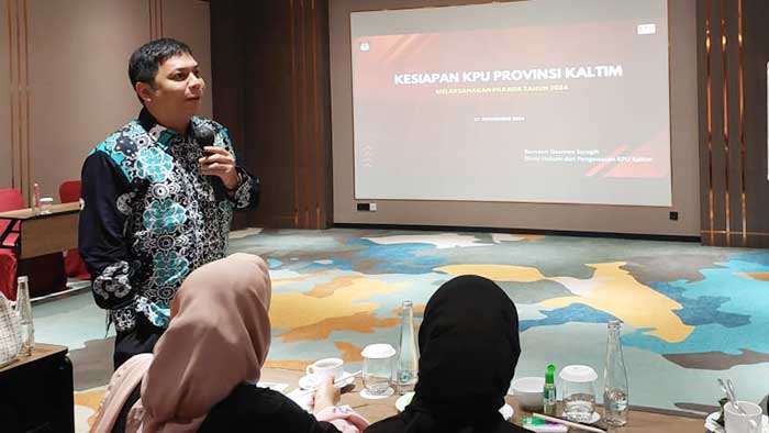 Dalam paparannya, Divisi Hukum dan Pengawasan KPU Kaltim Ramaon Dearnov Saragih menguraikan proses dan tahapan Pilgub Kaltim 2024. Tersampaikan juga aturan-aturan mengenai teknis pelaksanaannya. Ramaon mengutarakan, guna memudahkan dan kelancaran tugas KPU Kaltim, maka dibentuklah badan adhoc se-Kaltim.